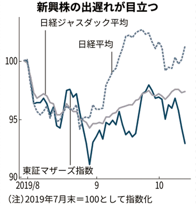 新興株 出遅れ目立つ マザーズ指数1カ月半ぶり安値 日本経済新聞