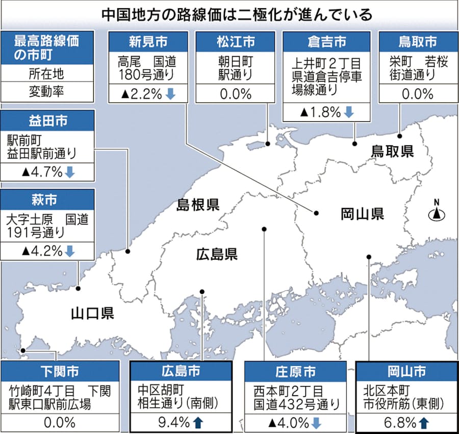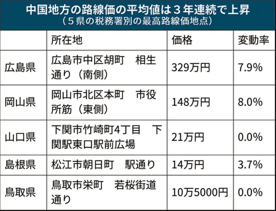 中国5県路線価 26年ぶり上昇 広島 岡山がけん引 日本経済新聞