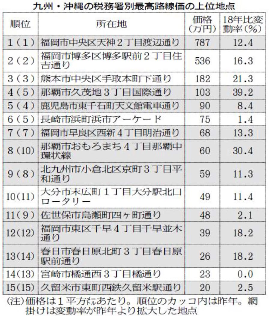 九州 沖縄の最高路線価 19年 と傾向 Sumai 九州 新築 リノベーション不動産情報