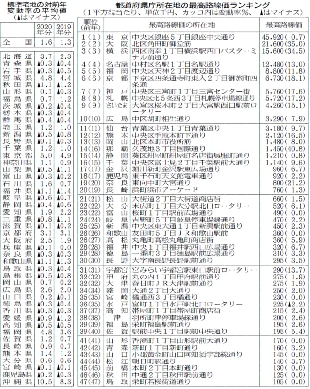 路線価4年連続上昇 19年 27県は下落 二極化続く 東京新聞 Tokyo Web
